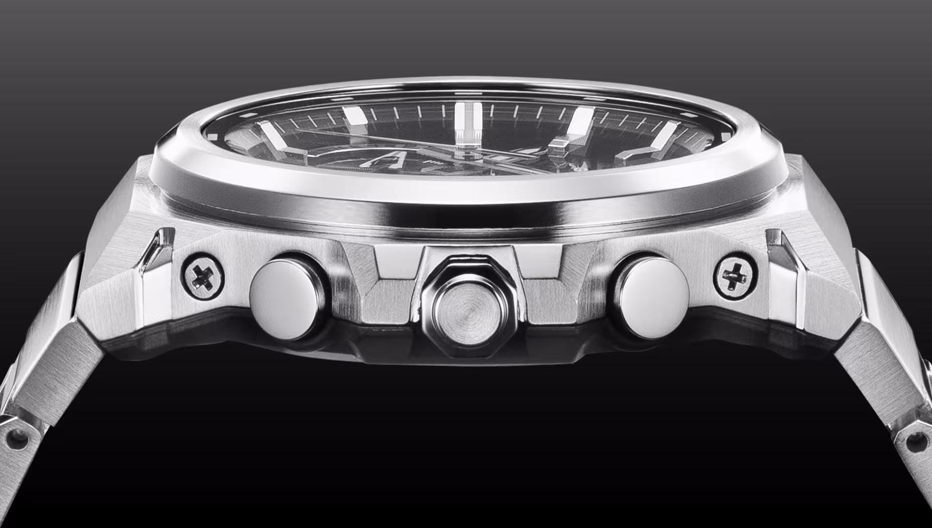 Elegancki, stalowy czasomierz, który wnosi wyjątkową odporność i precyzję w codziennym życiu. Model GST-B1000D-1AER łączy w sobie zaawansowane technologie – zasilanie słoneczne („Tough Solar”) oraz łączność Bluetooth („Mobile Link”) – dzięki czemu nigdy nie musisz się martwić o wymianę baterii czy dokładną regulację czasu. Masywna, a jednocześnie subtelna koperta o klasycznej stalowej barwie doskonale sprawdzi się zarówno w formalnym wydaniu, jak i podczas aktywności codziennych. Wodoszczelność 20 ATM (200 m) oraz konstrukcja typu G-Shock zapewniają pełne bezpieczeństwo w różnych warunkach.